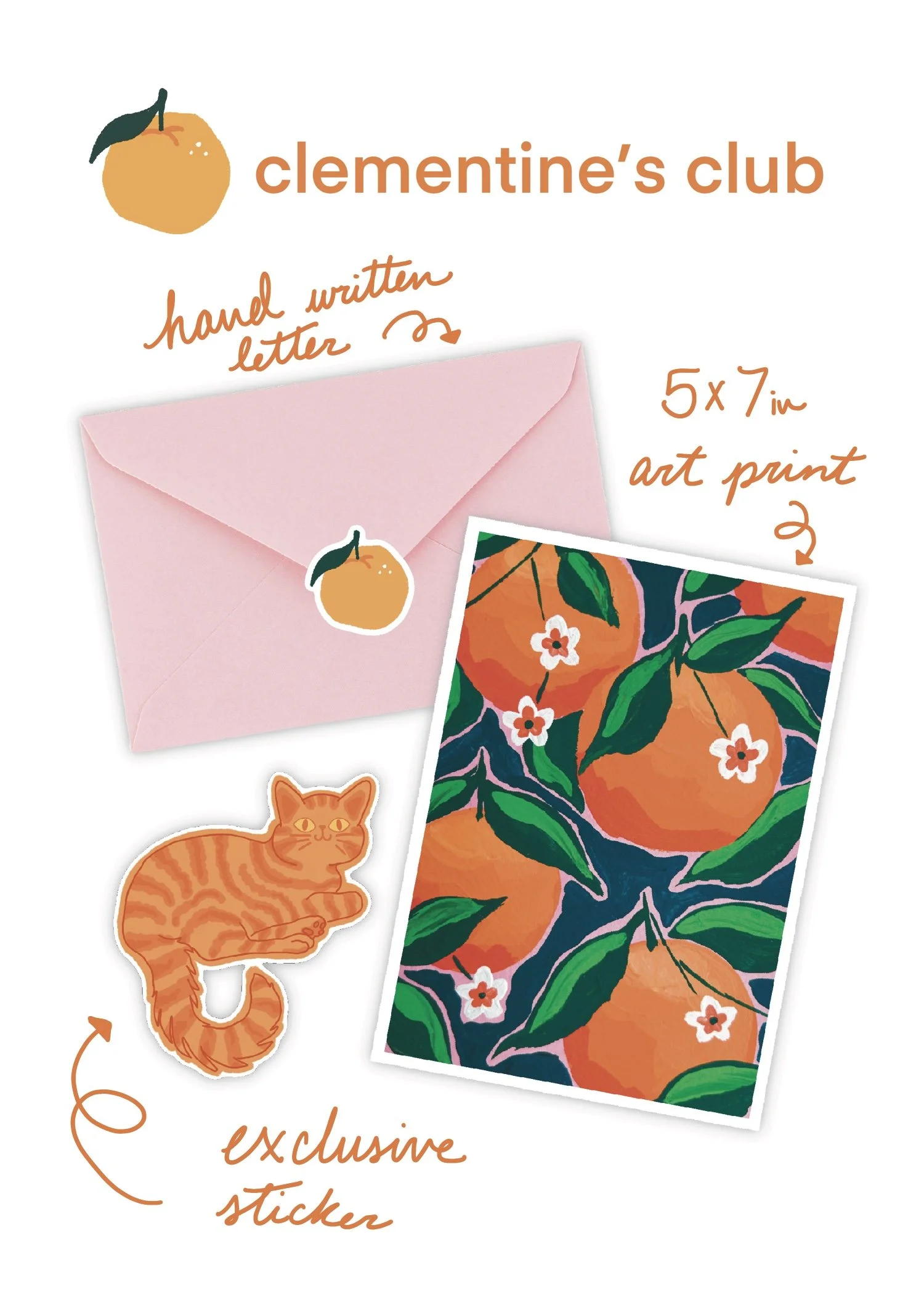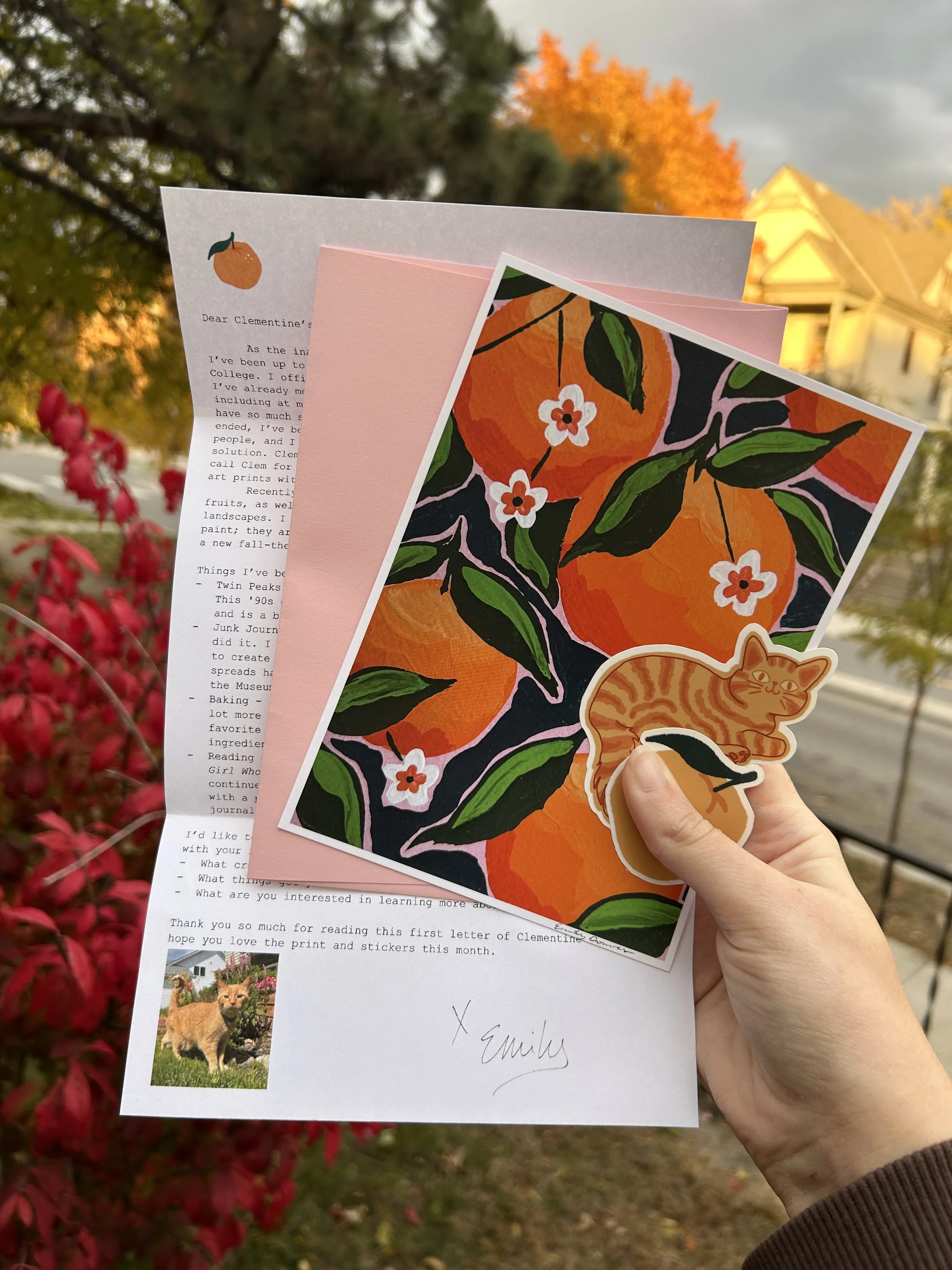 Clementine’s Club is a brand-new snail mail club designed to bring a little bit of joy to your mailbox every month! By subscribing, you will receive:
