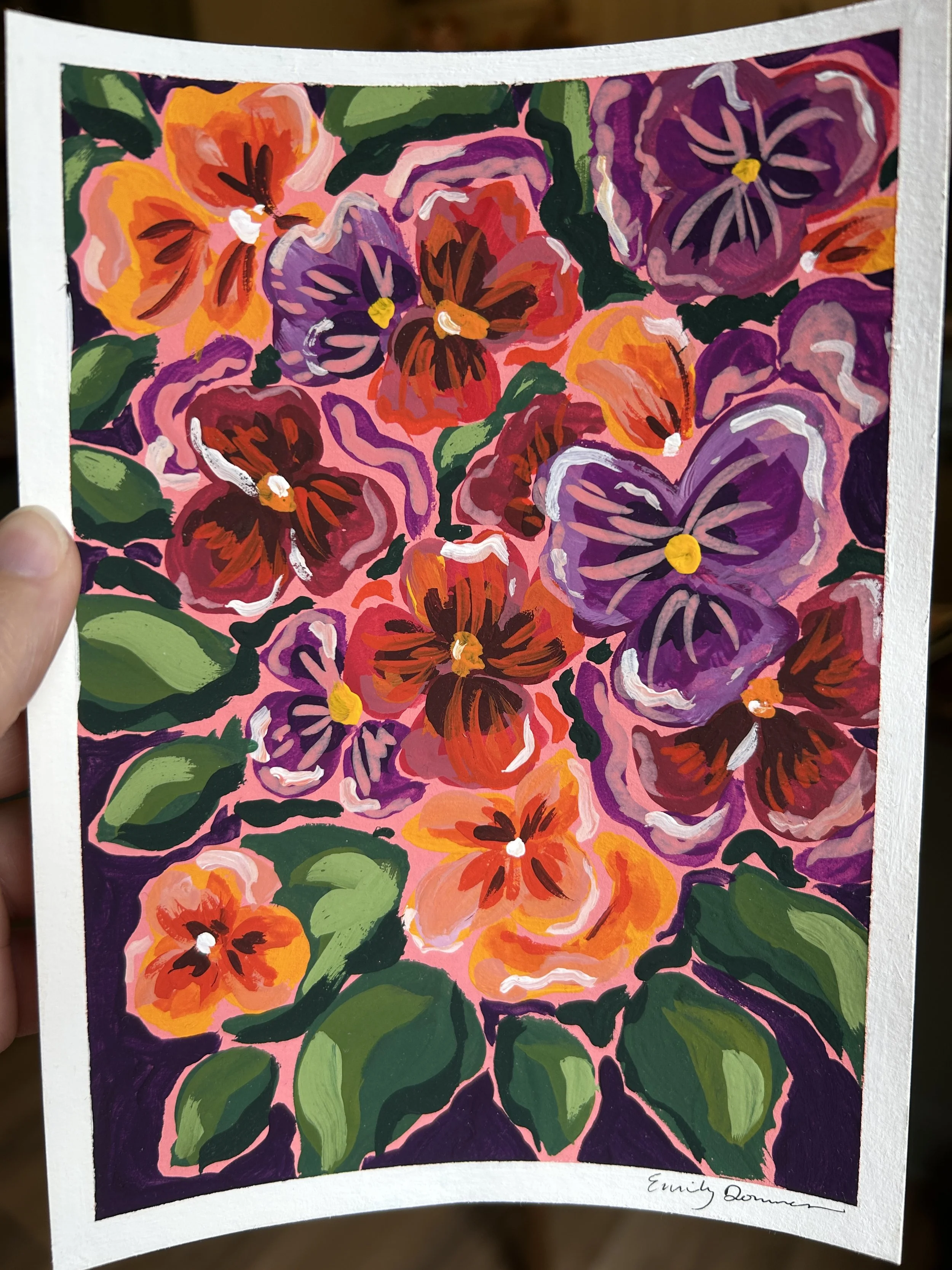 Shop › Pansies Original Gouache Painting (Framed) Image 1 of 2 Image 2 of 2 Pansies Original Gouache Painting (Framed) $55.00 sold out 5×7 in framed original gouache painting on paper. Framed dimensions: 9×11 in. Refurbished frame Sold Out Added! 5×7 in framed original gouache painting on paper. Framed dimensions: 9×11 in. Refurbished frame